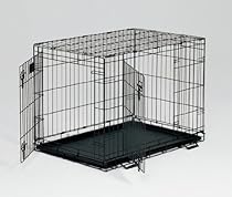 I bought this crate for my 30-lb beagle/terrier mix dog and it's great. It folds up in a cinch (it's literally 3 steps and takes about 10 seconds max) and has carry handles on the side, so it's really easy to transport. I like having the 2 doors so I have options of how I can place the crate in a room. There are latches on the top and bottom of each door so it's very secure. Great crate!See all 525 customer reviews... Each crate/cage has a FREE divider panel to ensure the proper size crate for your puppy from the start The MIDWEST Life Stages folding Double Door Dog