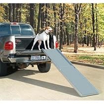 I purchased this item for my 100 pound German shepherd and......he doesn't like it at all (not the product's fault, however). I like the concept and it is lightweight. It is basically made from a hard plastic with non-slip footing for the animal. It telescopes fairly easily. But.....I expected a lot more for that kind of money (I paid $107). When I opened the box, three end caps fell immediately to the ground. They will not stay in place so I had to epoxy them to cover sharp edges. I think this item is worth about half the price that I paid for it.....not a cent more. I would recommend that you spend another 40 or fifty dollars and ... From the leader in pet ramps comes the Deluxe XL model Its combination aluminum + plastic construction make it best combination of size, strength and light weight on the market Three inches