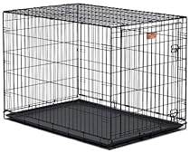 Midwest Homes for Pets 1542 every feature you can think of; a composite plastic pan for easy cleanup in the event of an accident, two plastic carrying handles to move the dog crate from one location to another comfortably, Safe and secure slide bolt latches for